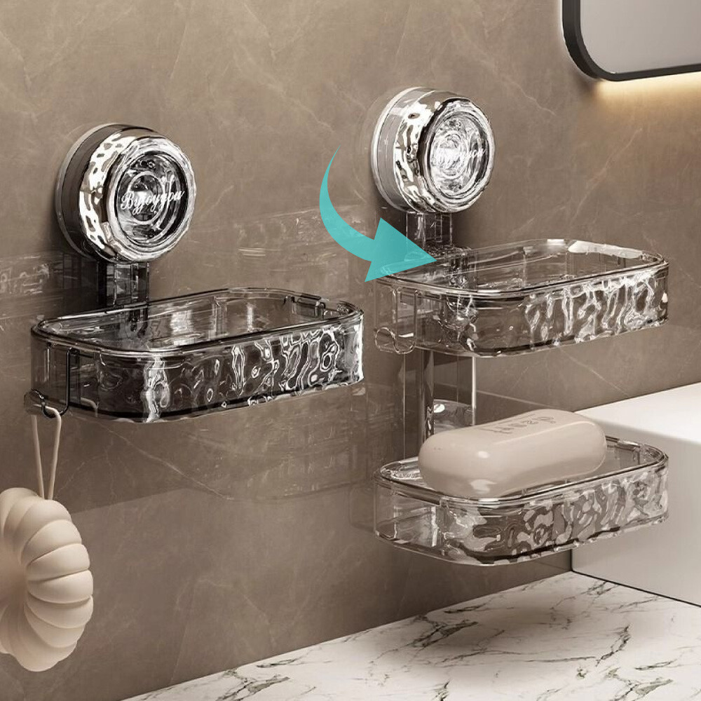 【JOEKI】雙層 輕奢波紋 吸盤肥皂盒 輕奢透明 肥皂盒 香皂盒 浴室置物架 【WY0288】