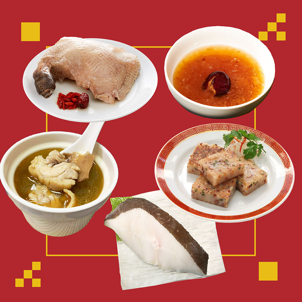 規格:醉雞腿1包+蘿蔔糕1包+扁鱈魚1片+麻油雞2包+妍窩飲2包