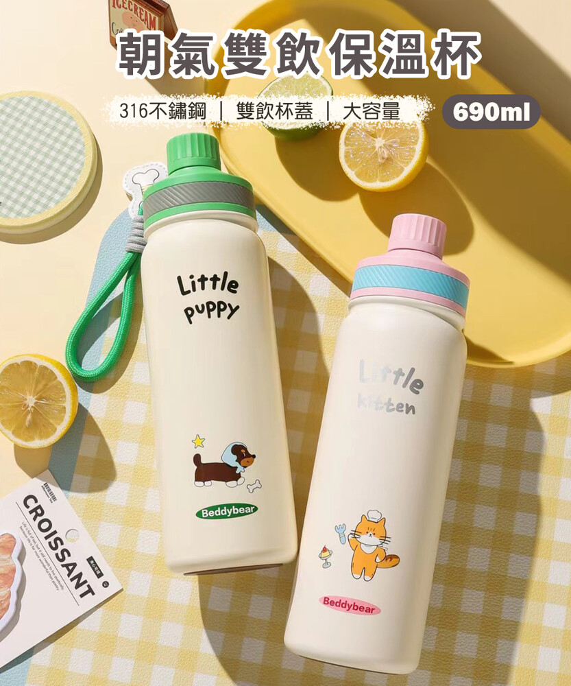 【品名】BEDDYBEAR可愛動物系列雙飲316不鏽鋼保溫瓶 大容量運動水壺 吸管杯 690ml