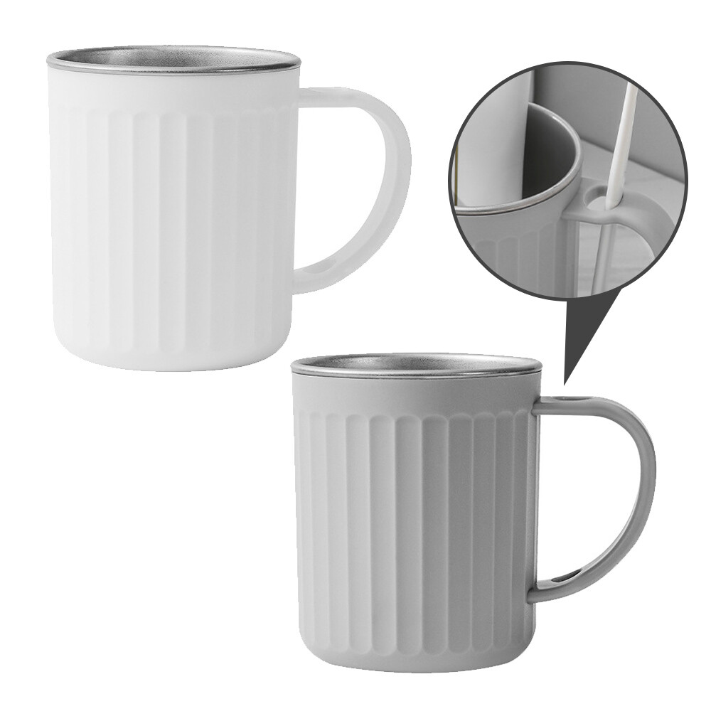 【COMET】420ml不鏽鋼帶插槽牙刷漱口杯(水杯 咖啡杯 刷牙杯 洗漱杯 不鏽鋼杯/B-712)