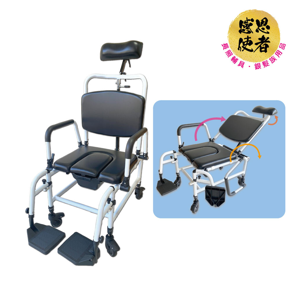 洗澡便盆椅-帶輪後仰款 ZHCN2519 移動式沐浴椅 洗澡椅 馬桶椅 長照輔具 居家照護