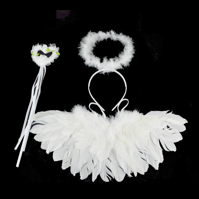 羽毛 天使翅膀(大號-上飄) 三件組 成人裝扮 羽毛翅膀 天使髮箍 仙女套裝 天使裝 萬聖節