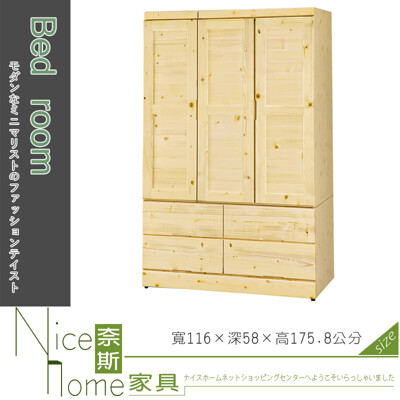 《奈斯家具Nice》112-2-HA 松木4X6尺衣櫥/衣櫃