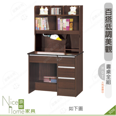 《奈斯家具Nice》264-05-HV 512胡桃色3尺書桌/全組