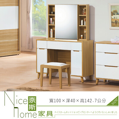 《奈斯家具Nice》80-17-HT 肯詩特烤白雙色3.3尺鏡台/含椅