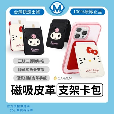 GARMMA 三麗鷗 磁吸皮革支架卡包 Hello Kitty 酷洛米 折疊支架 手機支架 卡片收納