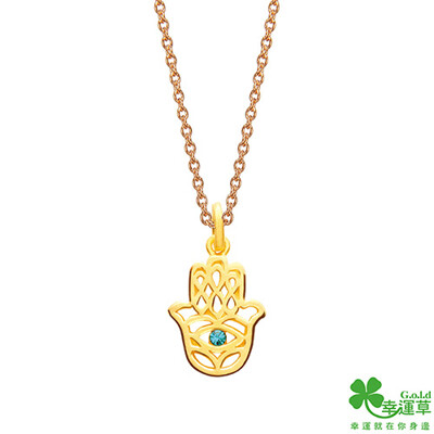 幸運草金飾 願之手印黃金/水晶墜子 送項鍊
