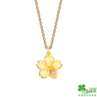 幸運草金飾 櫻花盛典黃金墜子 送項鍊