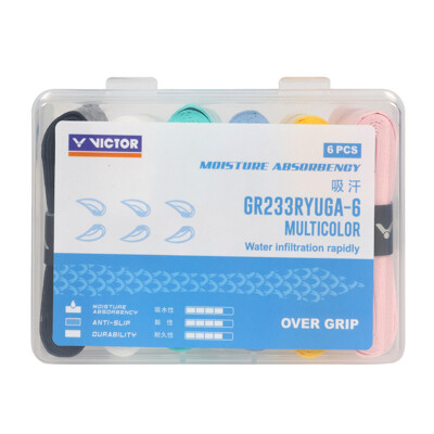 VICTOR 外握把布-混色6條裝-羽毛球拍 羽球拍 勝利 黑白藍黃粉