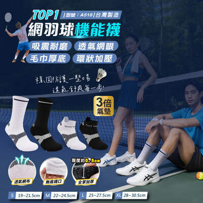 網網羽球機能襪(中筒)/台灣製/現貨/運動襪/網球襪/羽球襪/男襪/女襪/型號:A518【FAV】