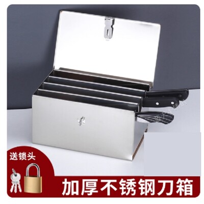 不銹鋼刀架廚房專用刀具收納菜刀盒四格帶磁(有蓋子送鎖頭)