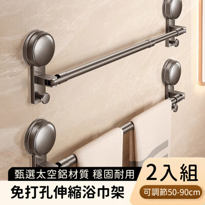 【好拾選物】免打孔伸縮毛巾架 浴巾架 多功能收納架-2入組