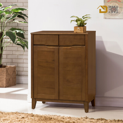 WAKUHOME 瓦酷家具Yamy淺胡桃實木2.7尺鞋櫃 (實木面板/檯面/座腳)A010-547