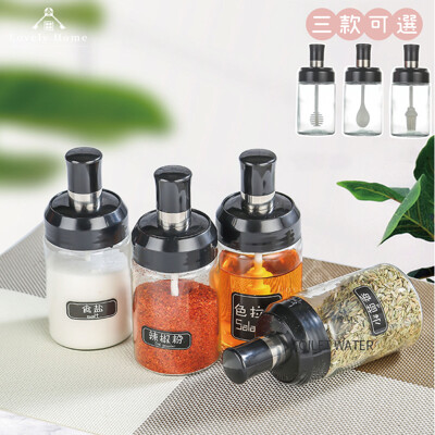 (台中 可愛小舖)廚房調料罐 勺蓋一體調味罐 調味瓶 密封罐 調料勺 蜂蜜棒 油刷棒 玻璃調味罐