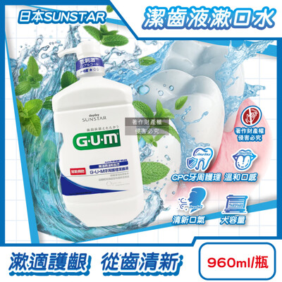 日本SUNSTAR三詩達-GUM牙周護理潔齒液漱口水960ml/按壓瓶-草本薄荷