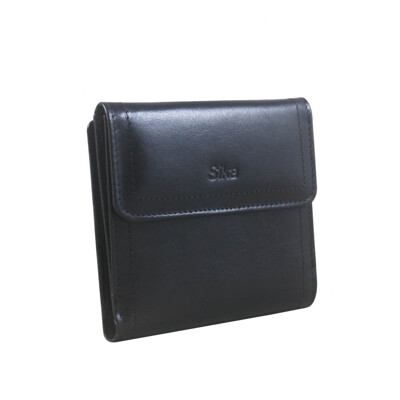 Sika牛皮壓扣拉鍊中夾A8210-03質感黑
