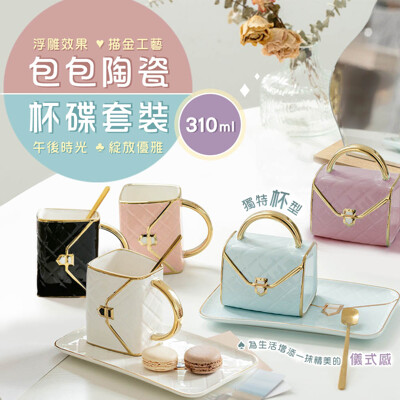 包包造型陶瓷杯碟套裝310ml(咖啡杯 馬克杯 聖誕交換禮物)