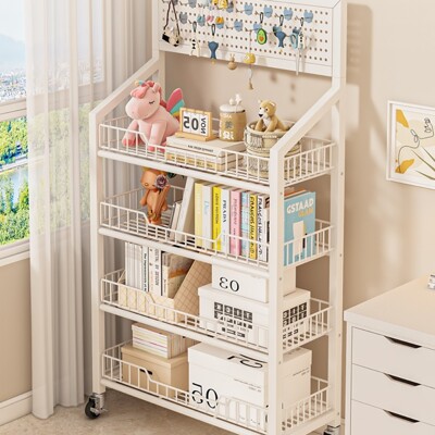 高中生學生 書本靠牆 鐵藝收納 可移動書架 桌邊側邊置物架 落地帶輪
