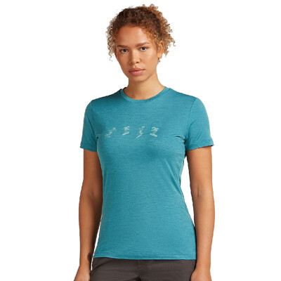 Icebreaker 女 Tech Lite 圓領短袖上衣 (滑雪日記)150《湖水藍》0A57CB