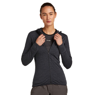 Icebreaker 女 DESCENDER RealFleece刷毛保暖連帽外套《深灰/黑》BA5